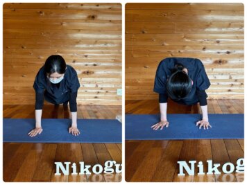 プッシュアップの姿勢をとります(膝をつけてもよい)。